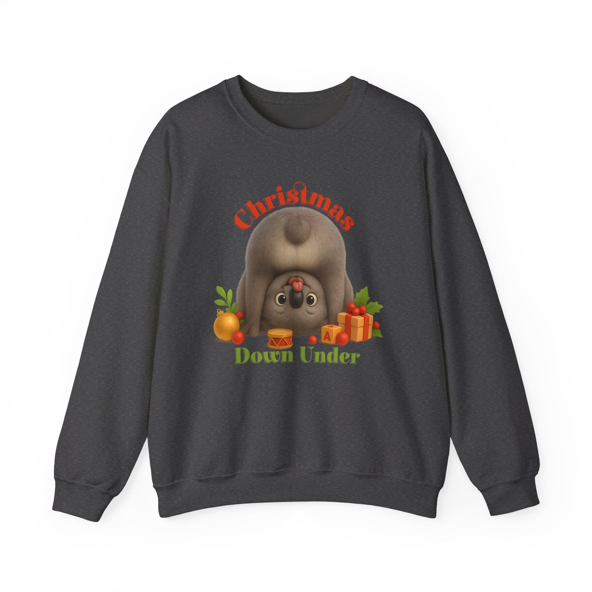 Christmas Down Under – Adult Sweatshirt | Upside Down Koala Christmas Design | Gumleaf Gang Festive Friends