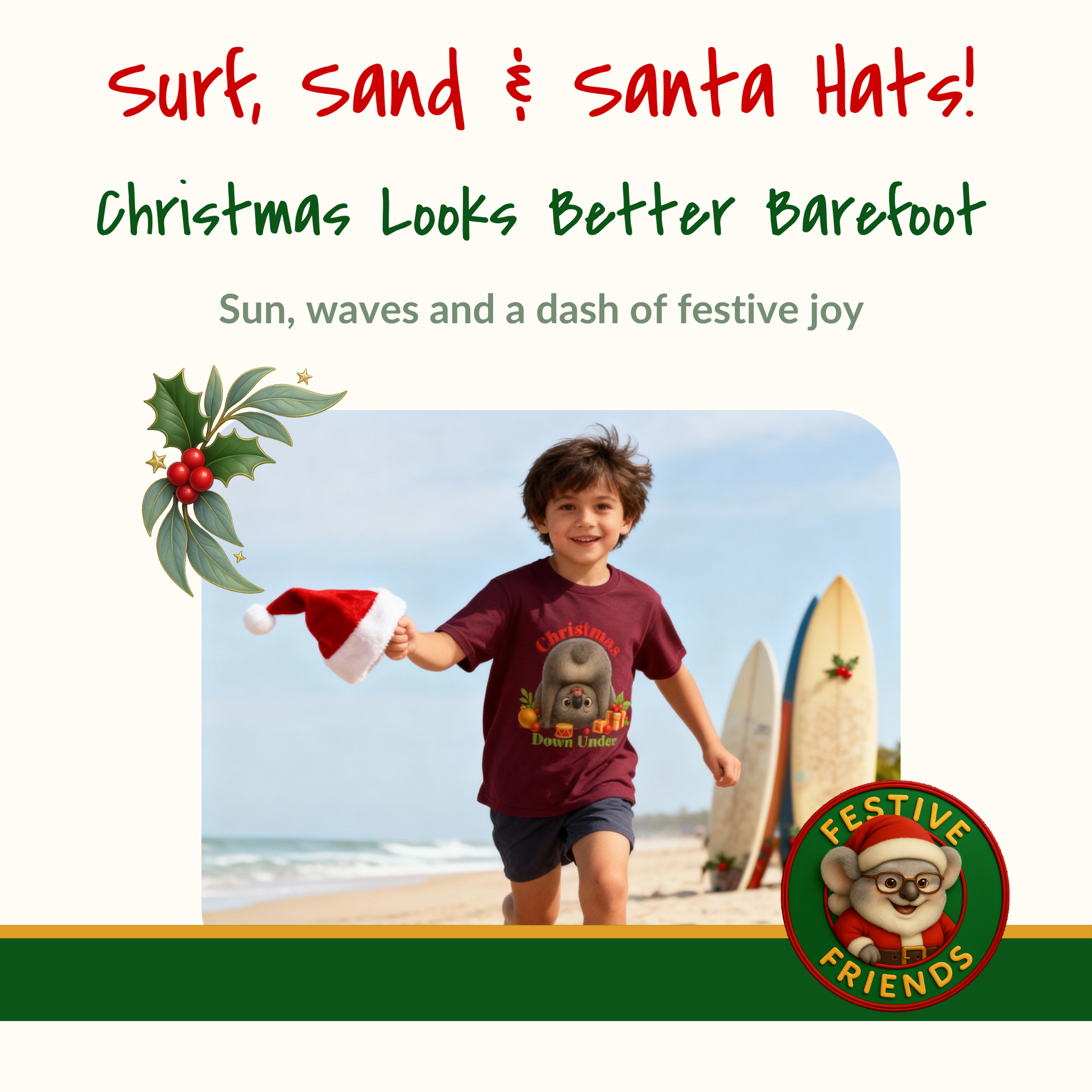 Make Christmas extra cheeky this year with the Christmas Down Under Kids T-Shirt! Featuring the Gumleaf Gang’s playful upside-down koala, this festive tee captures the spirit of Aussie summer holidays with a smile. Perfect for kids who love animals, Christmas, and a bit of mischief, it’s the ultimate holiday shirt for BBQs, family gatherings, and Christmas morning excitement.
