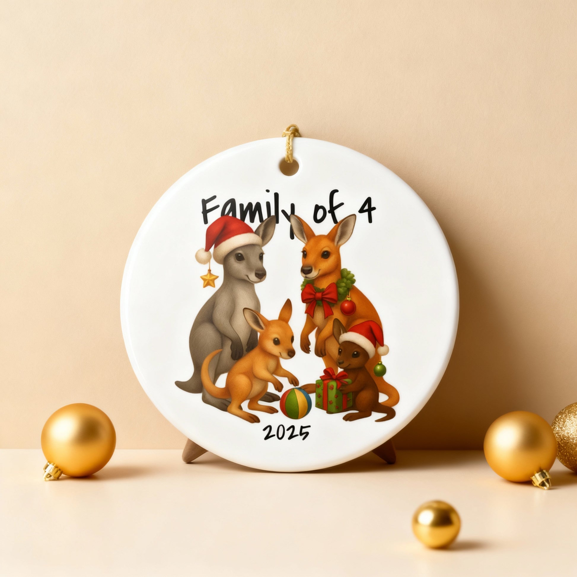 Family of 4 Australian Animal Christmas Ornament – Kangaroo Design – 2025 Festive Keepsake