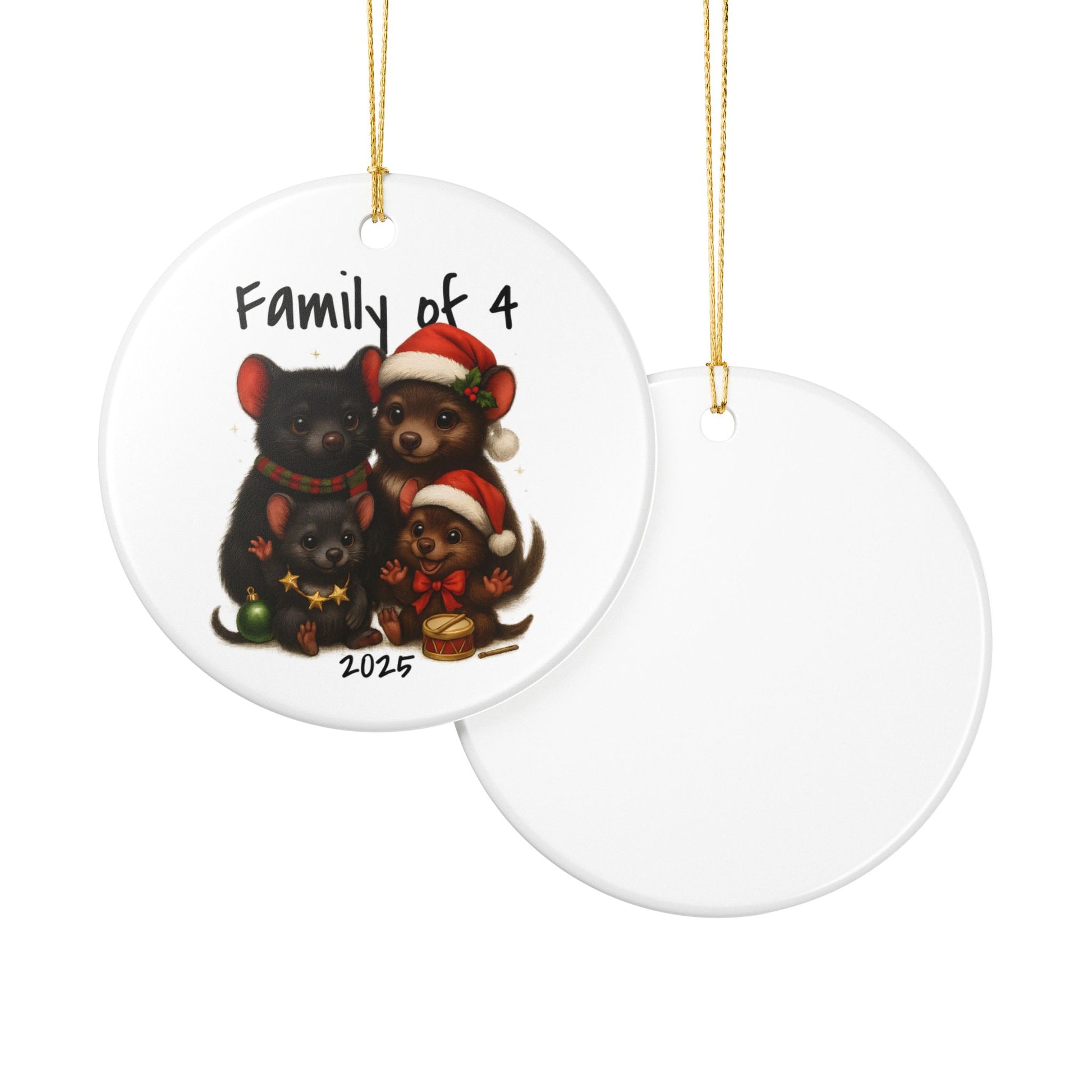 Family of 4 Australian Animal Christmas Ornament – Tasmanian Devil Design – 2025 Festive Keepsake