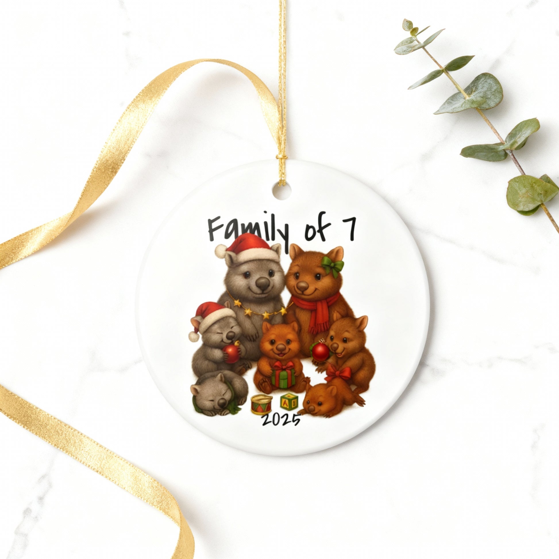 Family of 7 Australian Animal Christmas Ornament – Wombat Design – 2025 Festive Keepsake