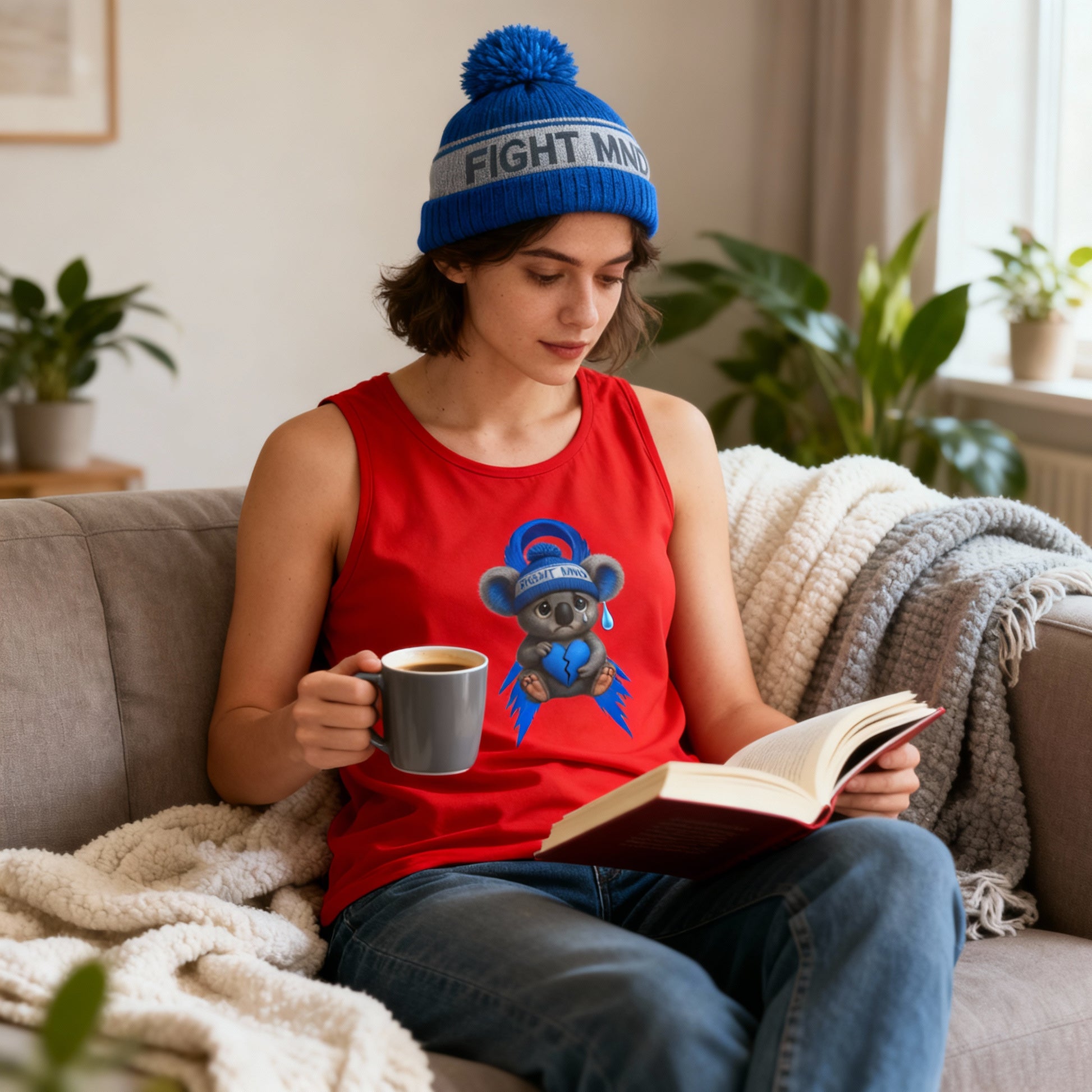 Show your support and raise awareness with our Fight MND Awareness Tank Top, featuring a heartfelt Gumleaf Gang design of a baby koala wearing a beanie with “FIGHT MND” across the front. The koala clutches a broken blue heart, symbolizing strength, hope, and solidarity with those affected by Motor Neurone Disease (ALS/Lou Gehrigs Disease).