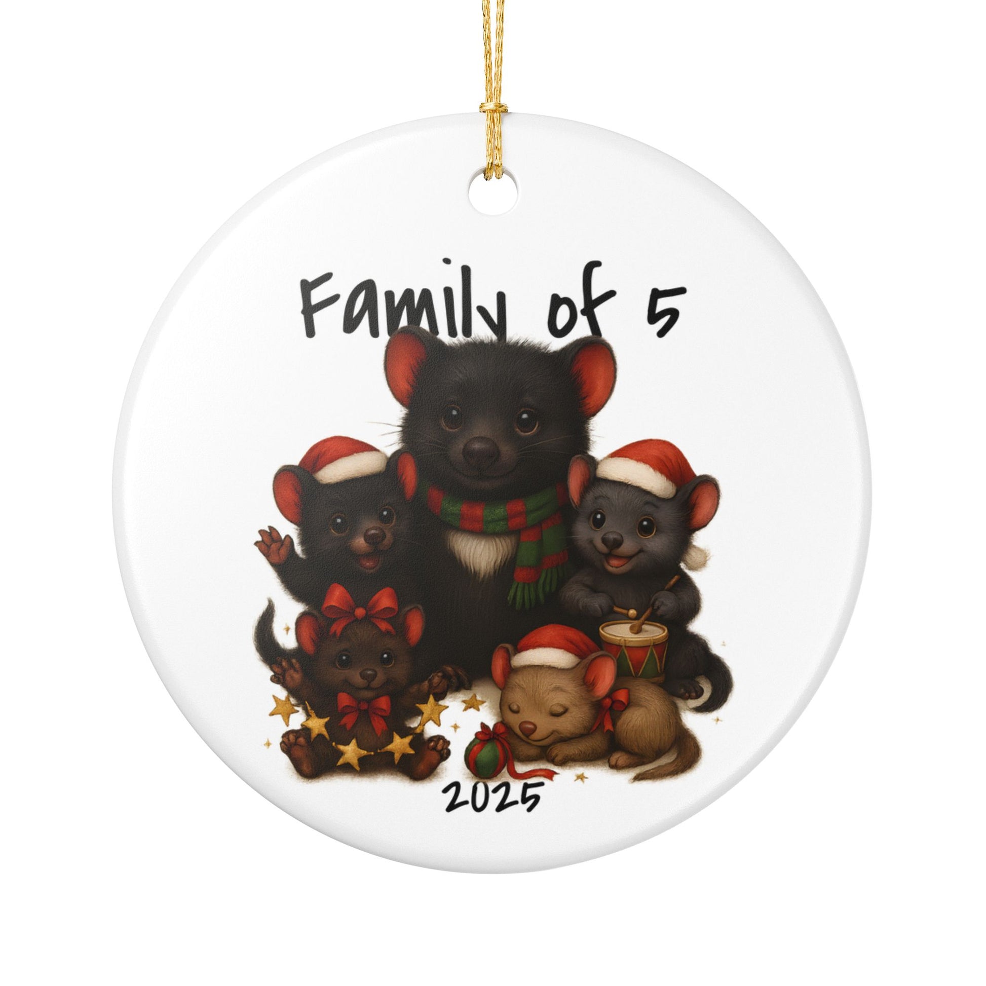 Single Parent Family of 5 Australian Animal Christmas Ornament – Tasmanian Devil Design – 2025 Festive Keepsake