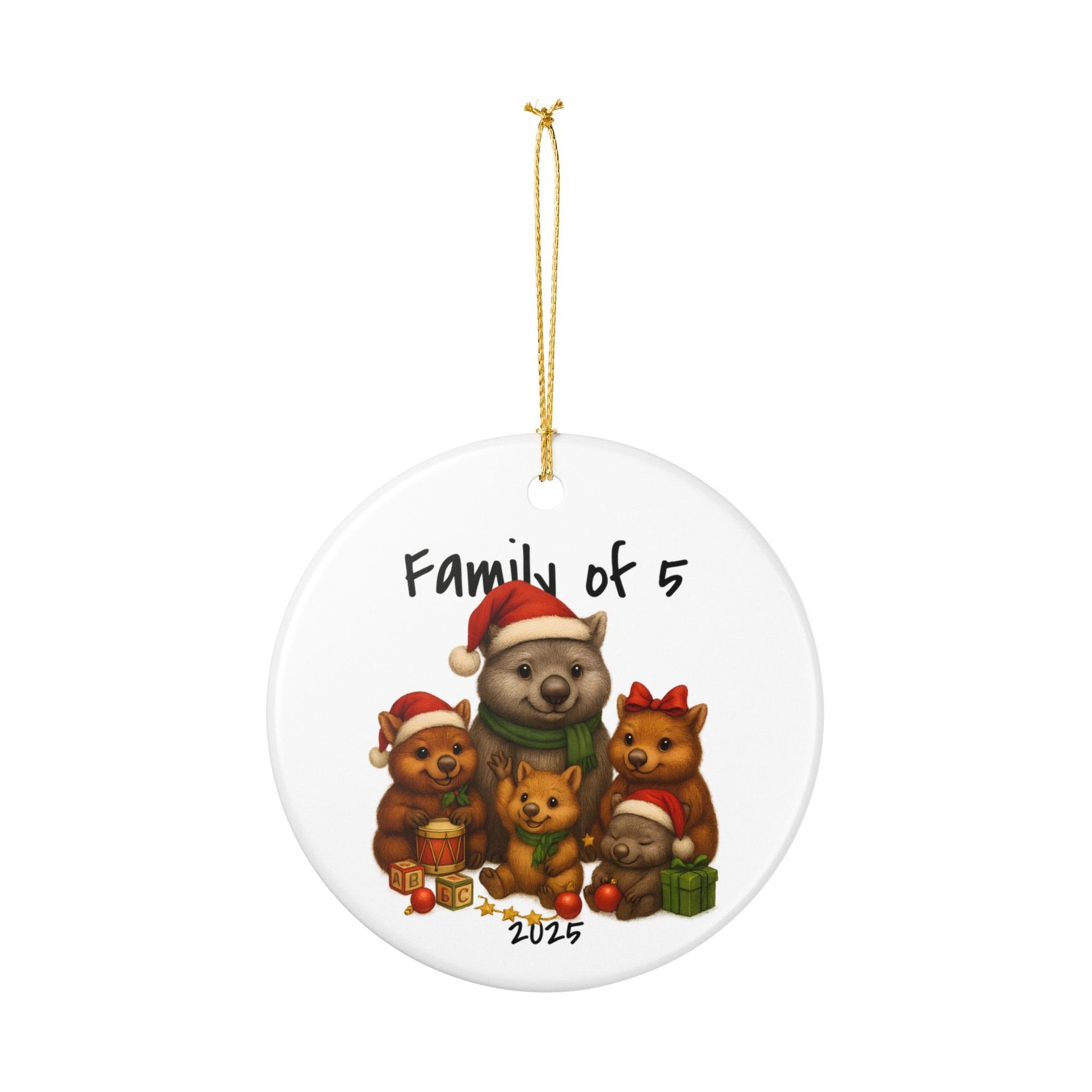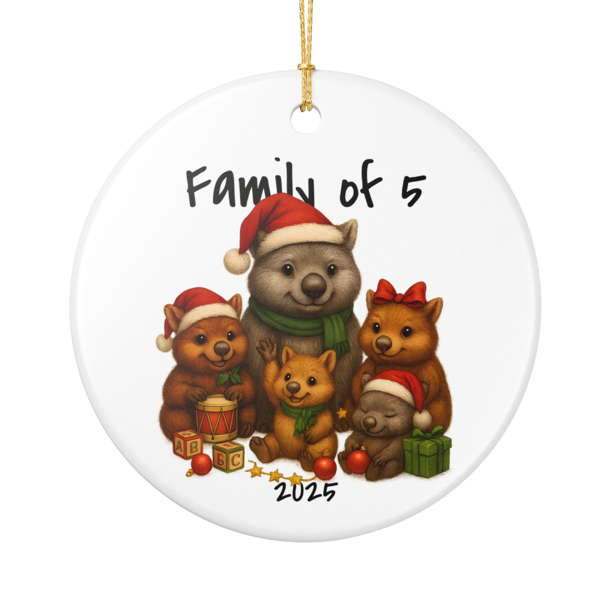 Single Parent Family of 5 Australian Animal Christmas Ornament – Wombat Design – 2025 Festive Keepsake