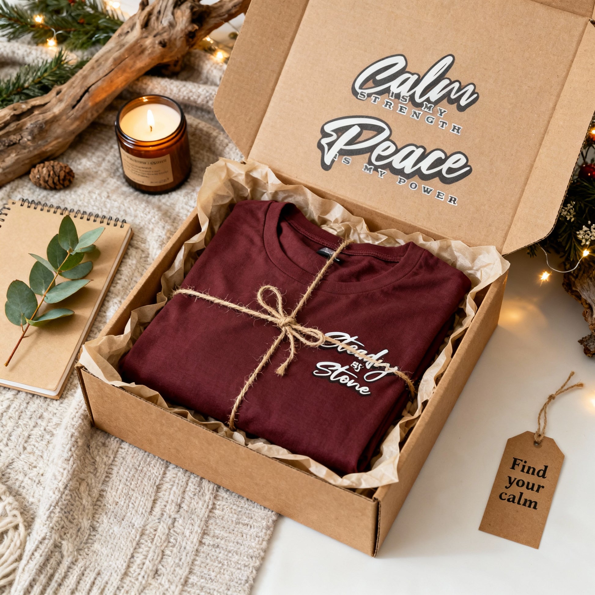 🌿 “Calm is my strength, Peace is my power” on the back — a mantra for balance and courage.